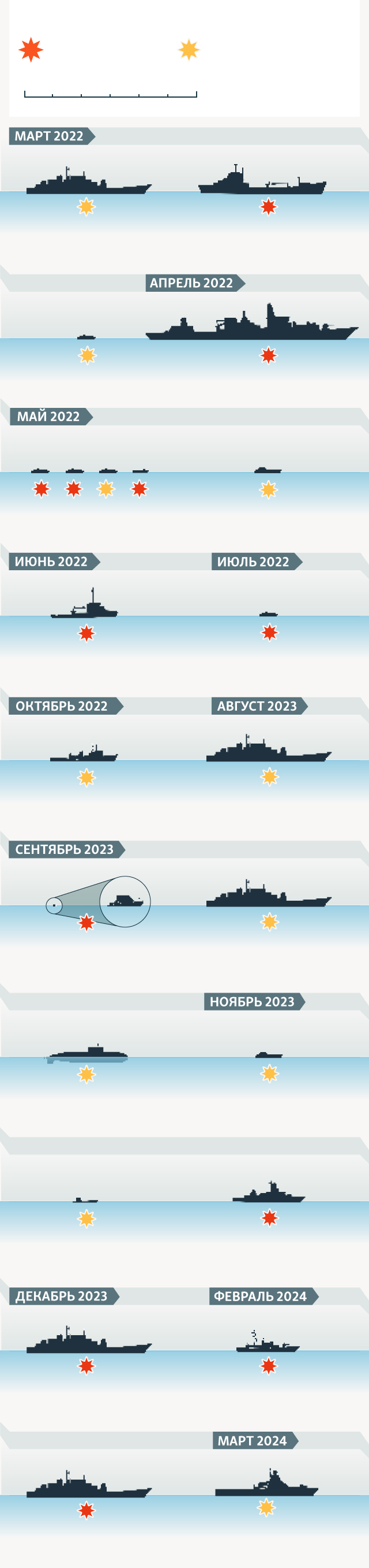 Около двух десятков российских военных кораблей были уничтожены или повреждены атаками Украины с начала полномасштабного вторжения РФ.