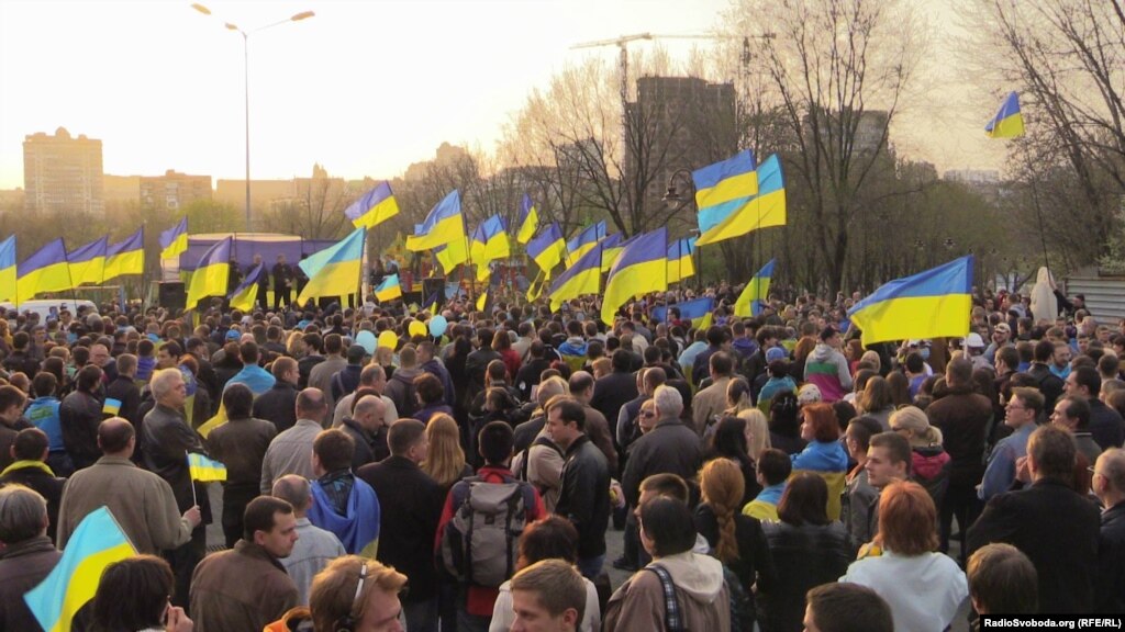 Митинг за единство Украины в Донецке в апреле 2014 года