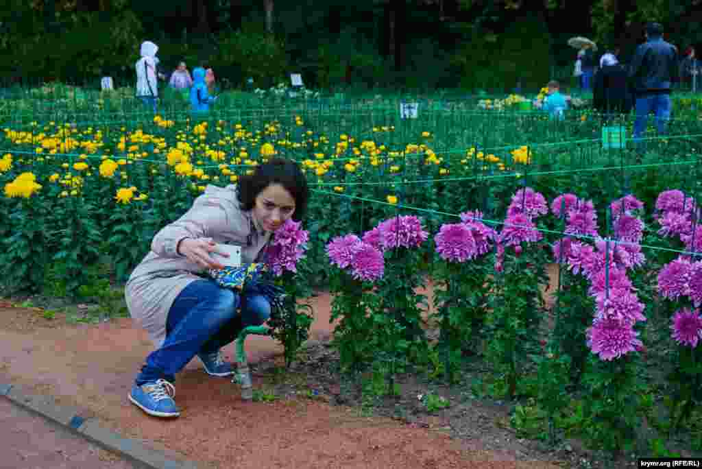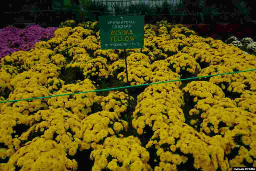 На выставке представлено около 200 сортов хризантем украинской, европейской, азиатской и американской селекции, в том числе 60 сортов и форм селекции ученых Никитского ботанического сада.