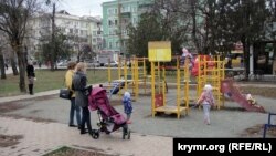 Молодежь (в том числе и крымские татары, судя по хиджабу девушки) чинно беседует.