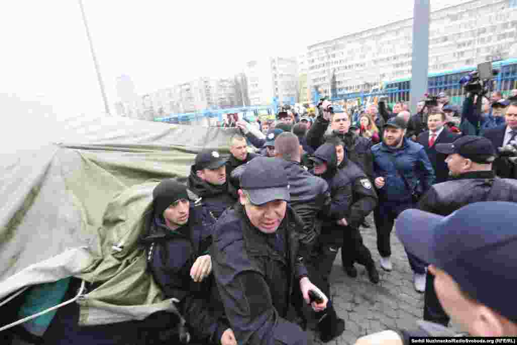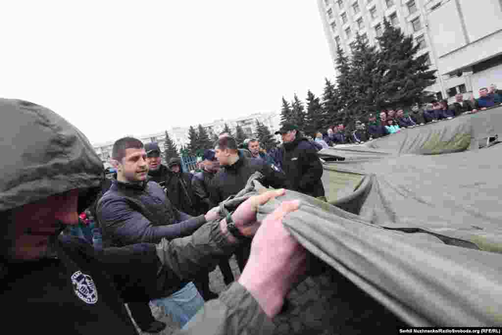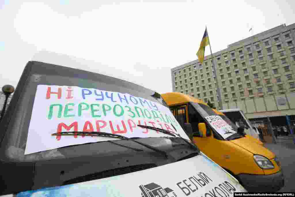 К зданию Киевской областной государственной администрации приехали около 150 водителей маршруток. Протестующие требуют бороться с нелегальными перевозчиками и распределять маршруты на конкурсной основе. При установке палатки произошла потасовка между участниками акции и полицией. Палатку в конце концов установили. Участники акции остаются под зданием и планируют зайти внутрь.