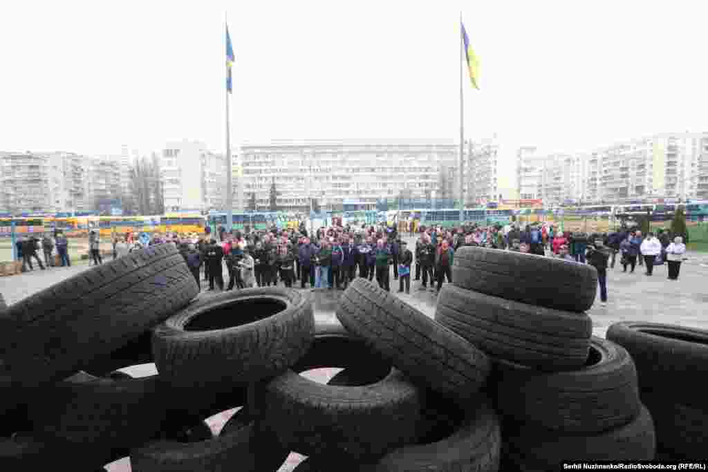 В Киеве протестуют водители маршруток: 150 машин заблокировали здание ОГА (фотогалерея)