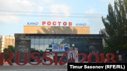 Если "сердцем" Левого берега Дона стал стадион, то на другом берегу главное место притяжения болельщиков – фан-зона. Она расположилась на Театральной площади города, прямо напротив знаменитого театра Горького – здания, выполненного в стиле конструктивизм: очертаниями оно напоминает трактор. Уже несколько лет в театре идет реконструкция, к чемпионату мира ее закончить не успели, поэтому бóльшую часть театра просто завесили баннерами.