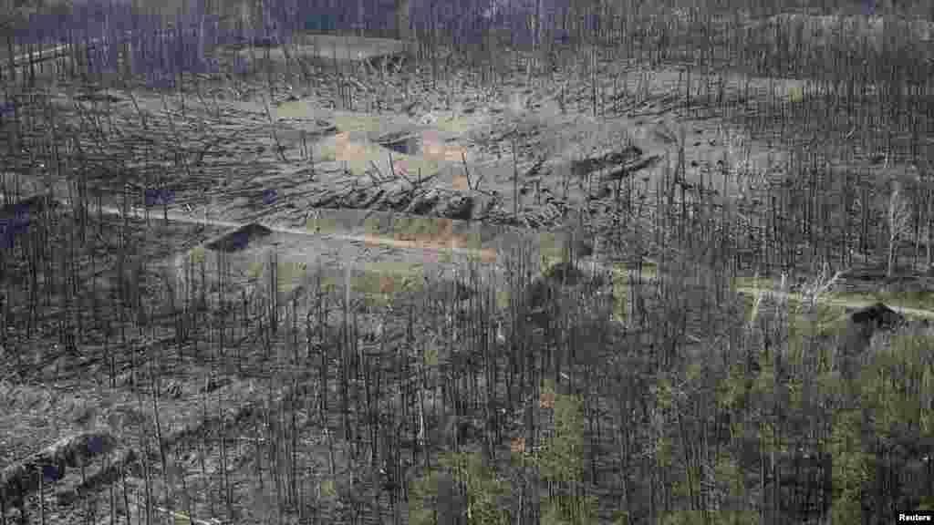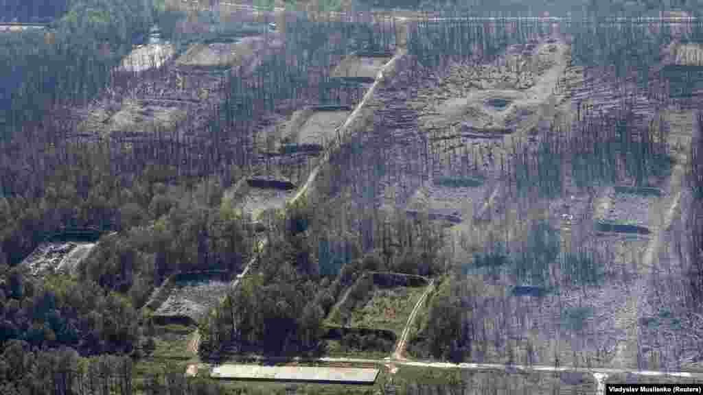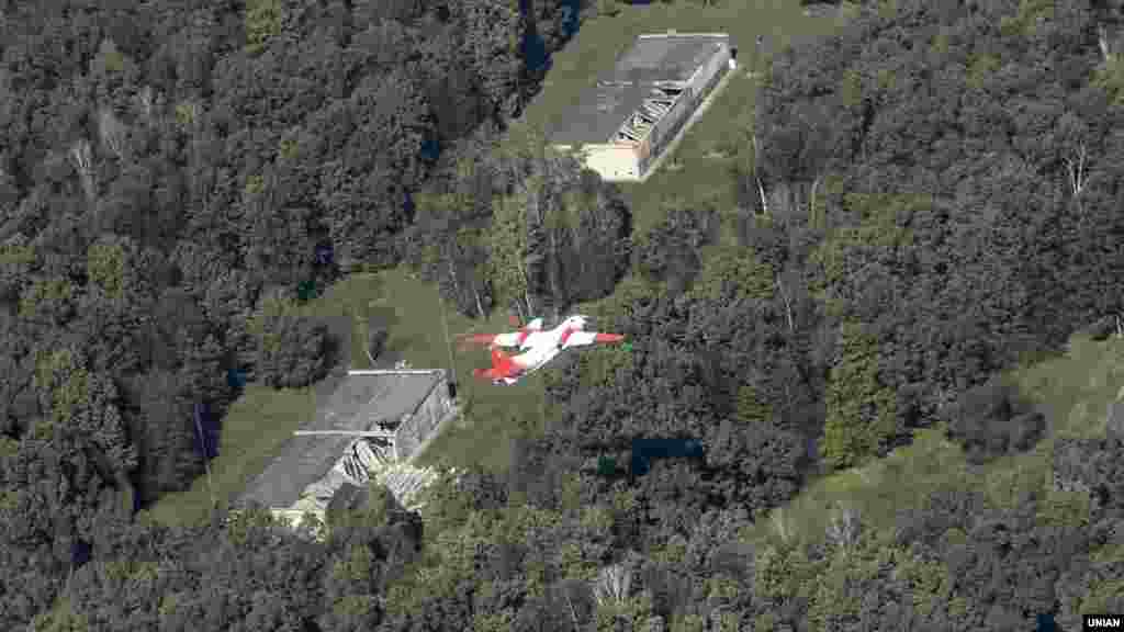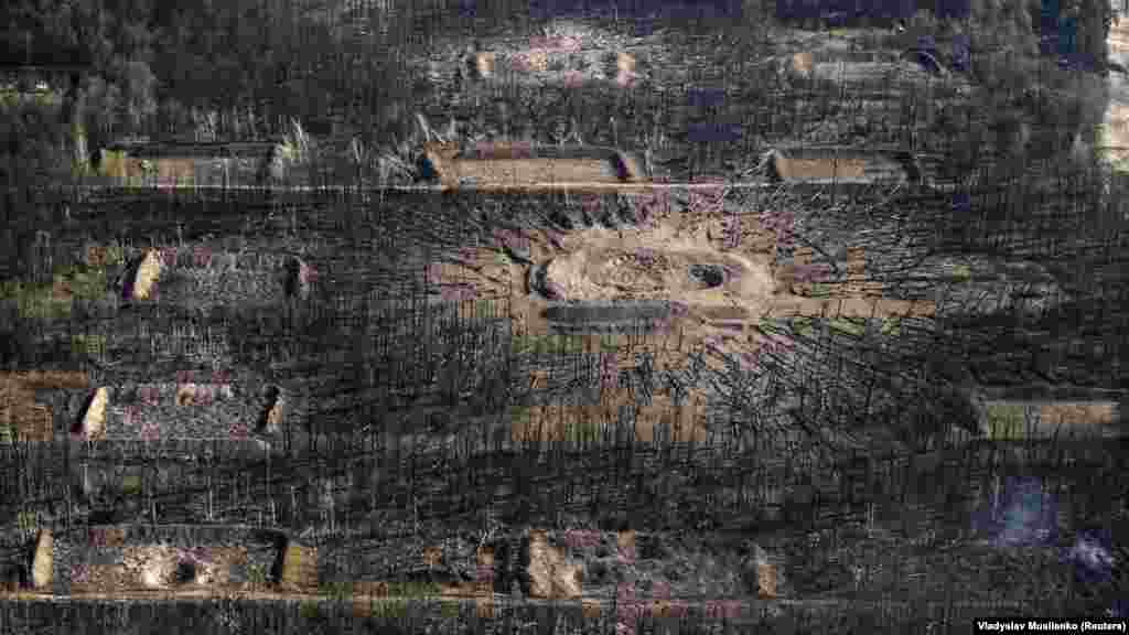 Корреспондент Радіо Свобода заснял с воздуха последствия взрывов боеприпасов на военных складах вблизи города Калиновка Винницкой области.