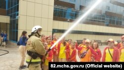 Управление МЧС России по Крыму провело для детей и персонала «Артека» учения по отработке действий при эвакуации в случае пожара. При этом дети на фото во время проведения этих учений были без масок, несмотря на пандемию коронавируса.