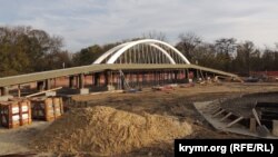 «Только что на объект завезли белоснежные арки для строительства миниатюрной копии легендарного мостового перехода, построенного через Керченский пролив. Уже через час арки будут установлены», – написал он в Фейсбуке.