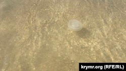 Вдоль побережья Азовского моря в районе Щелкино отдыхающие выявили больших медуз корнеротов. Как сообщает корреспондент Крым.Реалии, в воде возле берега их плотность по одной-две на квадратный метр.