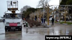 На набережной Ялты коммунальные службы устраняют последствия непогоды, сообщает корреспондент Крым.Реалии.