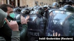 Ранее сообщалось, что грузинская полиция разгоняла протестующих при помощи водометов.