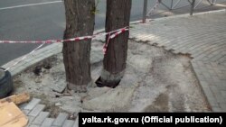 В Ялте строители залили бетоном деревья во время ремонта дороги – власти