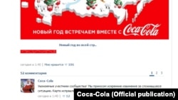 Накануне в соцсети «В Контакте» российское представительство компании Coca-Cola опубликовала карту Российской Федерации без Крыма, Курильских островов и Калининграда. Как сообщает «Украинская правда», карта была опубликована вечером 30 декабря. После того, как российские пользователи начали массово выражать свое недовольство, компания в ночь на 5 января опубликовала новую карту, на которой Крым был обозначен как часть территории России, и принесла свои извинения.