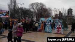 Как сообщает корреспондент Крым.Реалии, керчан развлекали песнями, танцами, колядками и рождественскими гаданиями. На площади продолжал работать вертеп, установленный здесь в канун Рождества.