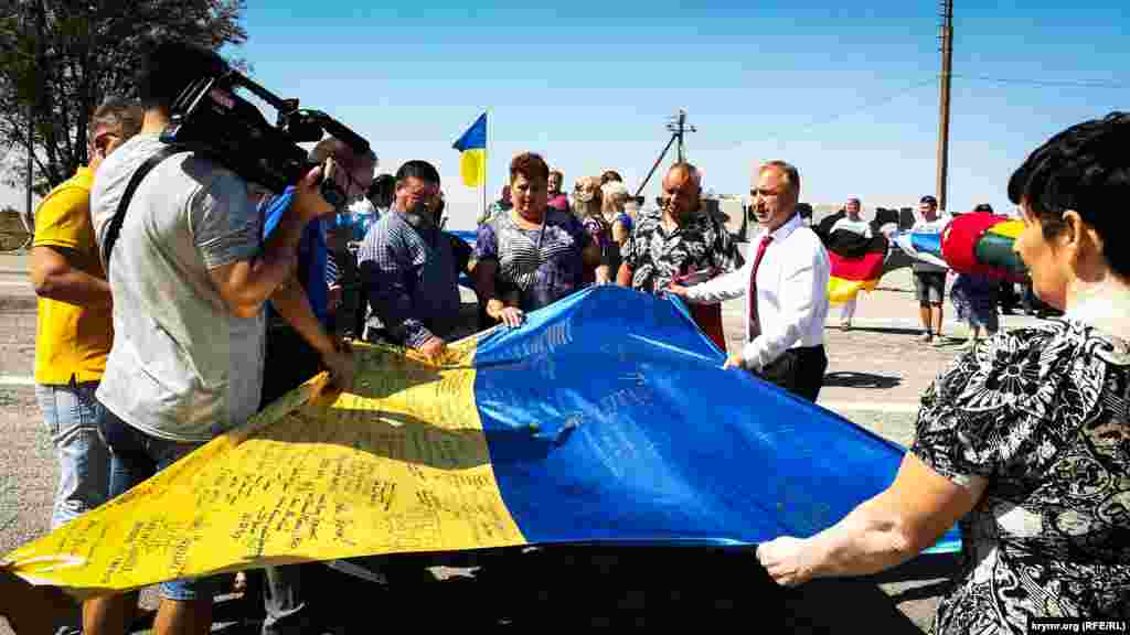 В акции возле контрольного пункта «Чонгар» приняли участие представители местной власти, общественных организаций, регионального Меджлиса крымскотатарского народа Херсонской области. Участники мероприятия оставили свои пожелания на флагах, подписи поставили также представители Национальной полиции и Госпогранслужбы Украины.