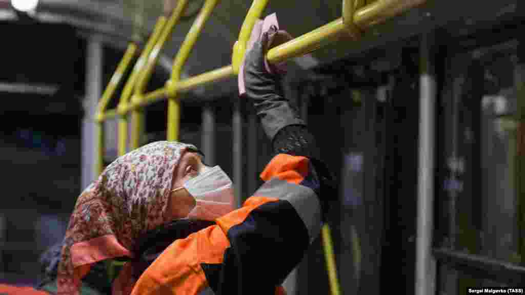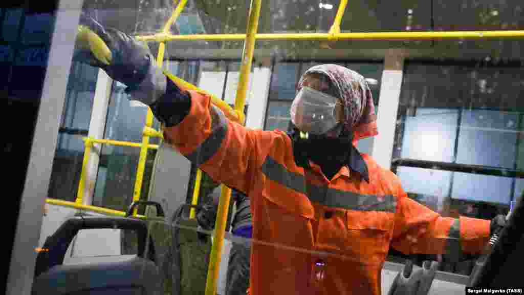 Каждую ночь сотрудники троллейбусного парка в Симферополе проводят антибактериальную обработку транспорта. Кроме того, согласно указу российского Министерства транспорта Крыма, в перерывах между рейсами на конечных остановках или во время ожидания отправления, водители городского транспорта должны протирать салон дезинфицирующими средствами, разрешенными к использованию в присутствии людей.