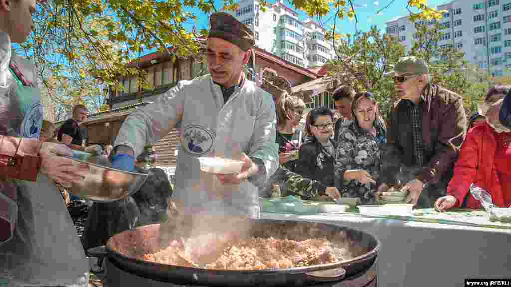 Армянское общество угощало хашламой и долмой, белорусы приготовили драники, чуваши испекли хуплу, молдаване выставили сэрмале в виноградных листьях и мамалыгу, таджики – восточный плов. За последним в этом году выстроилась самая большая очередь. Раньше фаворитом гостей был украинский борщ, однако в этом году представители Украинского национально-культурного общества Севастополя испекли ватрушки с творогом.