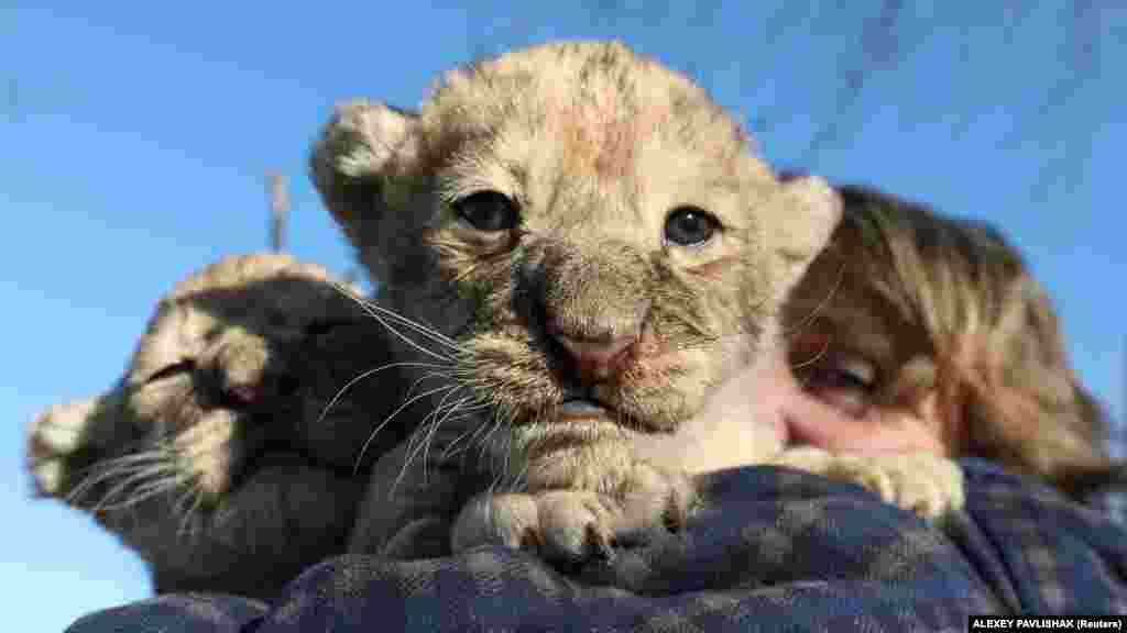 Две девочки и мальчик: львятам из сафари-парка «Тайган» исполнилась неделя (фотогалерея)