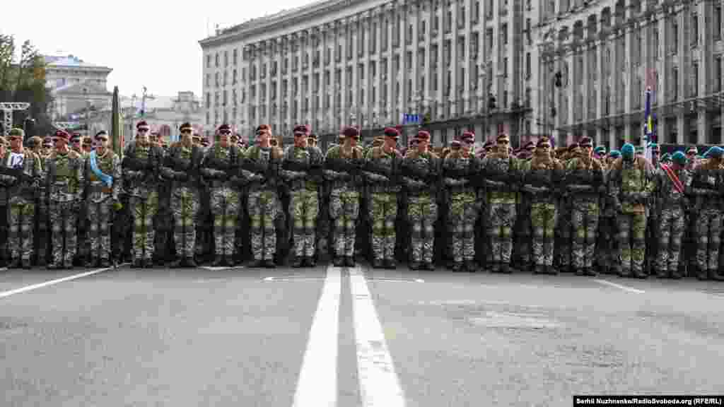 На главной улице украинской столицы – Крещатике – состоялась вечерняя тренировка личного состава, который традиционно привлекают к военному параду ко Дню Независимости Украины. В этом году страна будет праздновать 27-ю годовщину.
