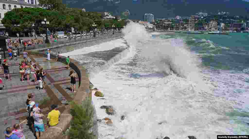 Ялтинцы и гости города предпочли наблюдать за стихией на безопасном удалении