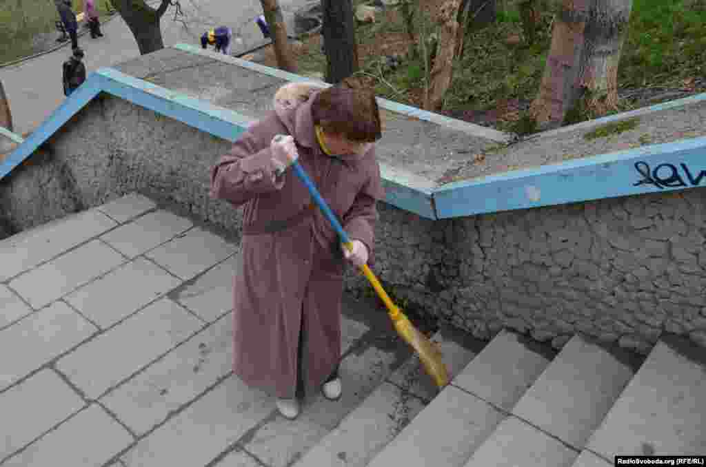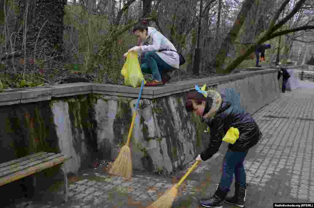 В честь Международного женского дня 8 марта 2014 года в поддержку единства Украины и против российской оккупации Крыма около сотни симферопольцев вышли убирать один из городских парков Симферополя. Антивоенную акцию организовали активистки организации «Крымские женщины за мир» и крымского Евромайдана. Участники уборки подметали дорожки симферопольского Горсада выкрашенными в желтый и голубой цвета метлами, убирали мусор в желтые и голубые пакеты. Женщины вплетали в волосы желто-голубые ленты, а мужчины были с флагами Украины. Публичные общественные акции в поддержку неделимости Украины и против присутствия российских войск в Крыму продолжались на оккупированном Россией Крымском полуострове еще несколько недель, увеличивая количество участников. Фотогалерея впервые была опубликована в марте 2014 года.