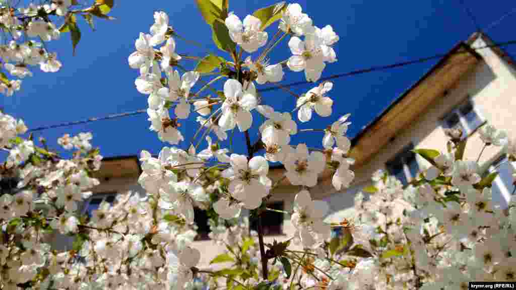 В аннексированном Севастополе продолжается цветение фруктовых деревьев. Эта цветущая вишня находится на проспекте генерала Острякова.