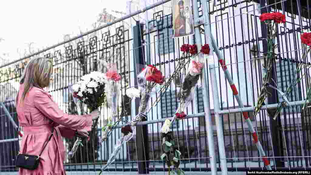 Киевляне несут цветы к посольству России в память о погибших в Санкт-Петербурге (фотогалерея)