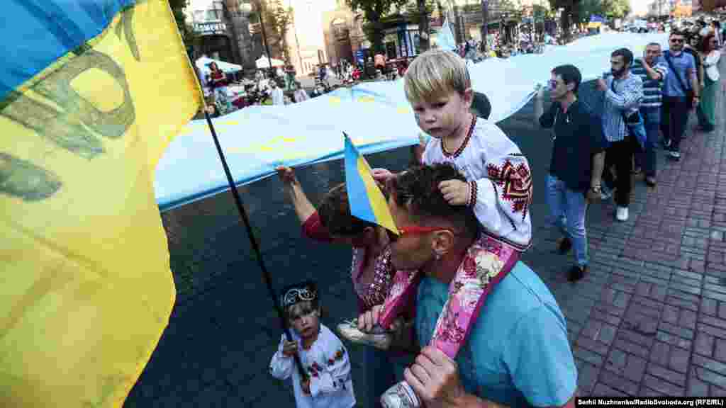 По Киеву прошлись с 40-метровым крымскотатарским флагом (фотогалерея)