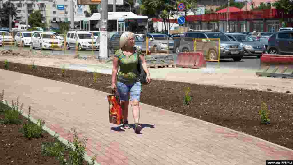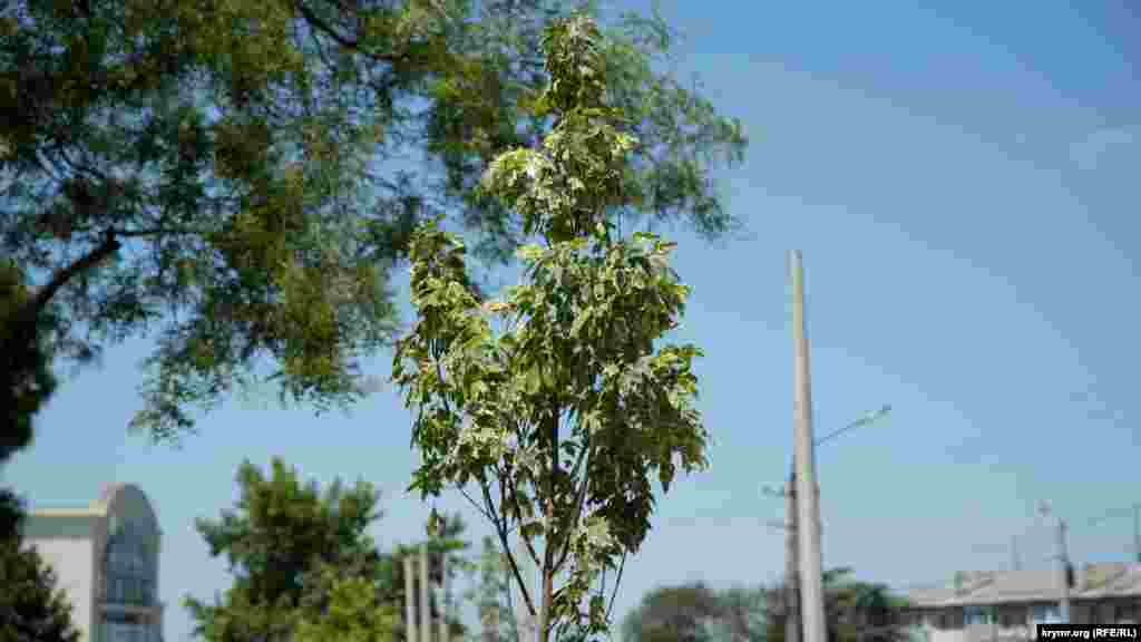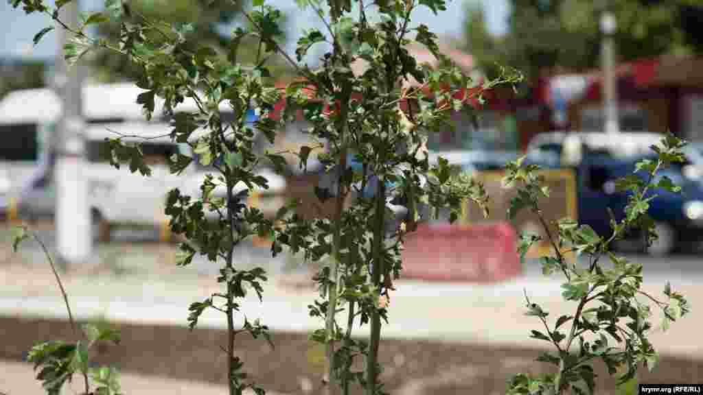 В начале июля на реконструированной площади перед Центральным рынком в Симферополе высадили деревья и кусты. Но спустя короткое время растения стали желтеть и засыхать.