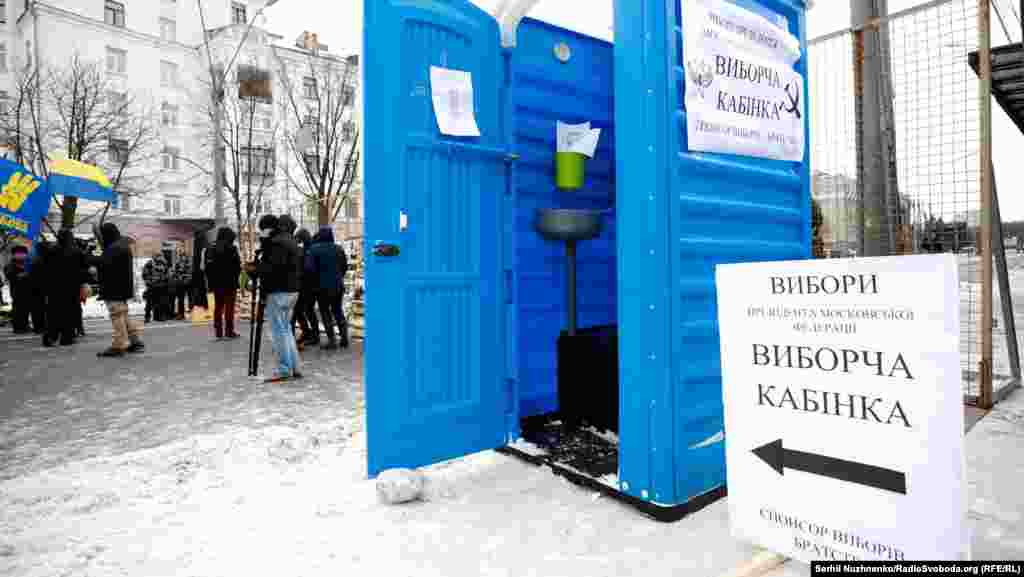 Кроме того, из биотуалета активисты сделали «кабинку для голосования».